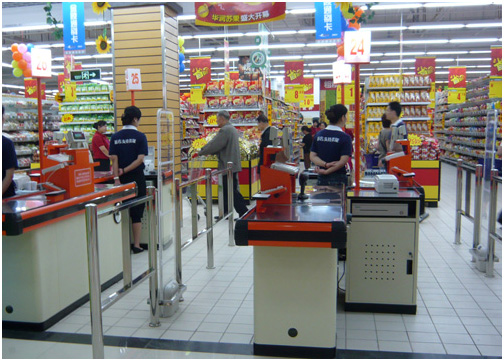 蘇果超市購物中心通道式超市防盜系統安裝現場圖——防護欄