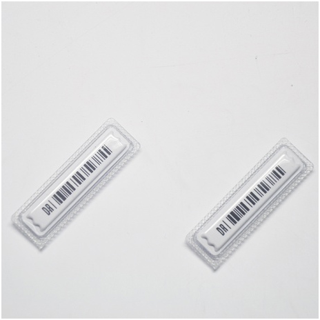 2、內(nèi)置一基片和三片金屬片,標(biāo)簽表面條形碼/空白/條碼DR/DR等樣式,也可以自定義定制聲磁軟標(biāo)簽。